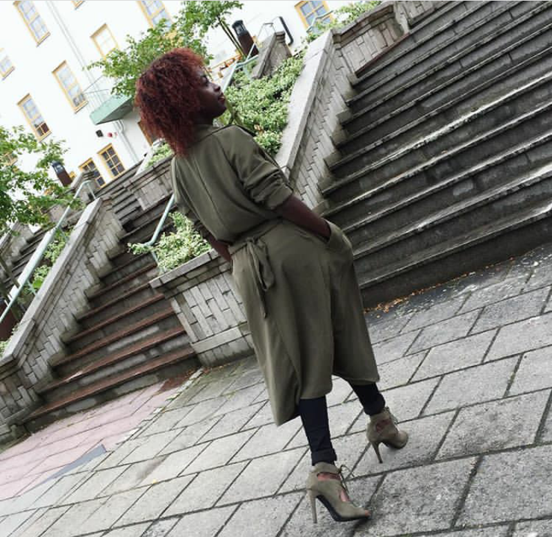 Fashionista Krinastyla is back again in the above two photos. and in the first picture she wore a casual hunter green dress and in the second one she wore and army green dress
